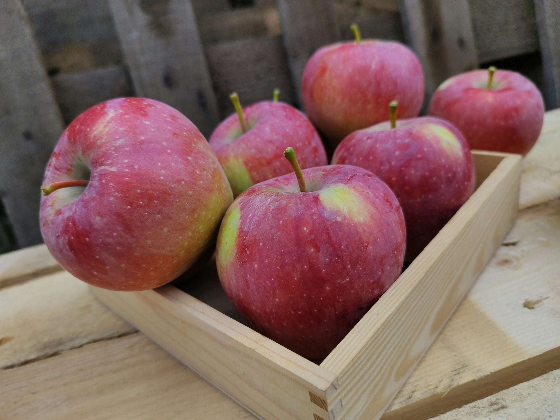 Un surtido fresco y crujiente de manzanas rojas, verdes y amarillas seleccionadas directamente del huerto. Ideales para comer solas, preparar postres, jugos o disfrutar en ensaladas. Una caja práctica, saludable y llena de sabor natural.